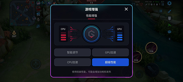 另外,中興為其設(shè)置了「游戲增強(qiáng)」控制面板,你可以根據(jù)自己的實(shí)際需要選擇智能調(diào)節(jié)、GPU加速、CPU加速或者超級(jí)性能模式。如果只是拿來(lái)玩王者榮耀或者和平精英這類不那么吃配置的手游,個(gè)人推薦智能調(diào)節(jié)模式,性能、溫控以及續(xù)航等各方面都會(huì)相對(duì)更均衡一些。