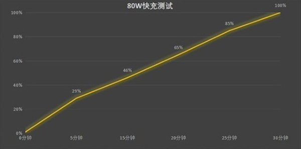 vivo X80內(nèi)置了4500mAh電池+雙電芯80W閃充,30分鐘充滿電量。