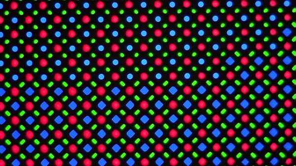 Axon40 Ultra是中興Axon40系列最旗艦的型號,這也是中興第一次在最高等級的機型中使用屏下攝像頭,而這一次Axon40 Ultra采用京東方的面板。我們實驗室利用顯微相機拍攝前置攝像頭附近的子像素排列如下,用的是藍(lán)鉆(類晶鉆)排列(左上為攝像頭區(qū)域像素)。