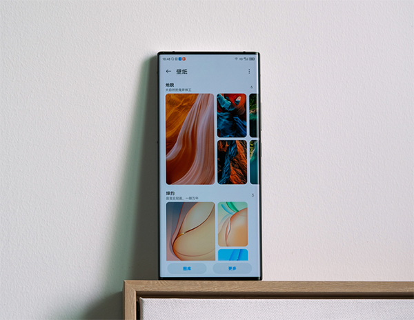亮屏的Axon40 Ultra正面可能是今年出品的手機里最具辨識度的一款,由這一塊高屏占比、屏下前置攝像頭、完整無挖孔的曲面OLED面板造就——將它與高屏占比挖孔屏的GalaxyS22 Ultra擺在一起,你就能明白。
