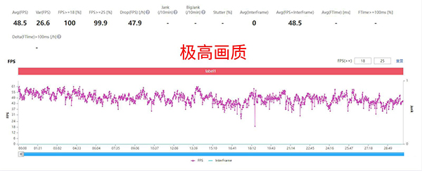 高負(fù)載運(yùn)行《原神》時(shí),iQOO Neo6 SE開始階段能夠全力進(jìn)行渲染,后15分鐘地圖打怪,幀率波動(dòng)會(huì)更明顯一些,最終平均幀率48.5幀。30分鐘游戲后測(cè)溫,正面溫度42.9度,背面溫度41.8度。