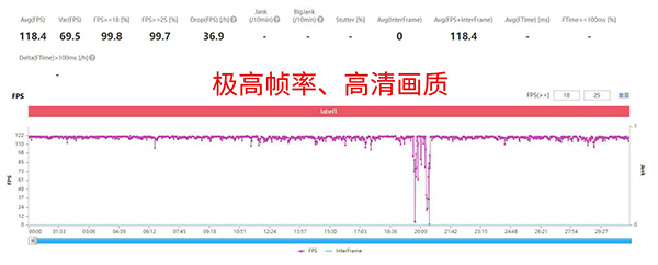 而在實(shí)際的游戲方面,iQOO Neo6 SE《王者榮耀》高清畫質(zhì)30分鐘平均幀率118.4,游戲全程運(yùn)行穩(wěn)定。30分鐘后測(cè)溫,正面最高溫度38.5度,背面最高溫度37.8度,詮釋了何為“無壓力”。