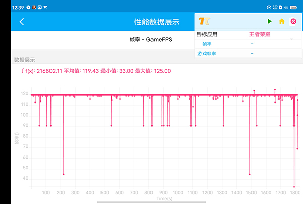 作為vivo最新推出的旗艦機型,vivo X80搭載了行業(yè)頂尖的旗艦芯片天璣9000,該芯片具備非常強勁的性能,完全可以流暢運行目前市面上的各類大型游戲,周遭的朋友基本都在玩王者榮耀,因此將它作為首款測試游戲,試玩時間為30分鐘,室內(nèi)玩耍,同時直接將游戲畫質(zhì)以及幀率開到最高,30分鐘顯示的幀率圖如下: