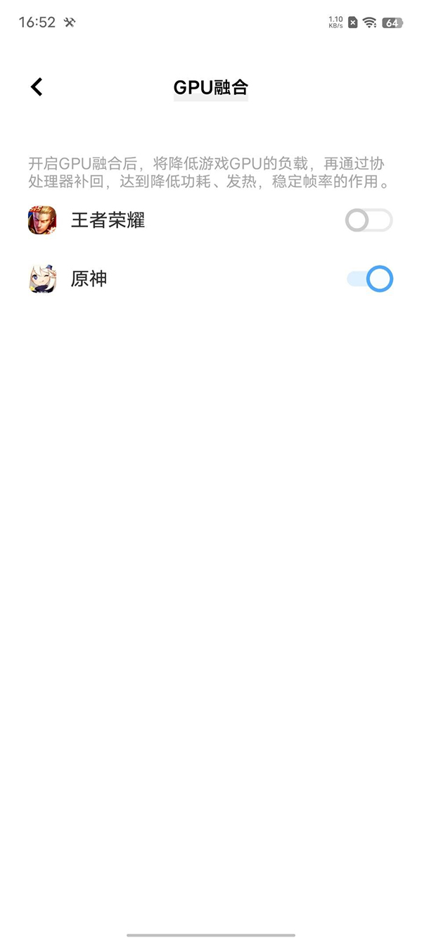在運行《原神》時,vivo X80 Pro天璣9000版的表現(xiàn)當真超出我的意料,在30分鐘的測試中其平均幀率達到了56fps,甚至可以比肩一些游戲手機了。不過當我們研究一番后發(fā)現(xiàn),用vivo X80 Pro天璣9000版玩《原神》能有如此幀率表現(xiàn)也有一部分功勞屬于“GPU融合”功能,該功能介紹顯示可以通過APU輔助GPU進行渲染,從大幅降低GPU負載達到降低功耗和發(fā)熱,穩(wěn)定幀率的作用。