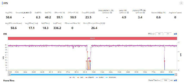 總體來說,vivo X80 Pro天璣9000版運(yùn)行《和平精英》要輕松很多,15分鐘的游戲時(shí)長(zhǎng),平均幀率能跑到58.6fps,而且大家看幀率統(tǒng)計(jì)圖,中間由于小編被淘汰一次,造成了比較大的掉幀,實(shí)際正常運(yùn)行游戲時(shí),基本上都是可以以滿幀60fps運(yùn)行的。