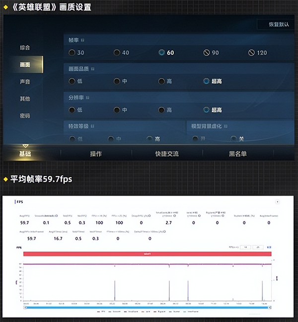 隨后,我們在《英雄聯(lián)盟手游》高畫質(zhì)全開+60幀模式下,一加Ace競速版的15分鐘平均幀率為59.7幀,游戲全程幀率表現(xiàn)非常穩(wěn)定,沒有出現(xiàn)掉幀和卡頓的情況,即使是團戰(zhàn)時的幀率也十分穩(wěn)定。