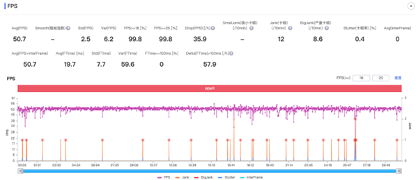 結(jié)合了MTK穩(wěn)幀策略和HyperBoost游戲穩(wěn)幀引擎的GPA穩(wěn)幀策略,一加Ace競(jìng)速版理論上會(huì)有更好的游戲表現(xiàn)。當(dāng)然我們也對(duì)一加Ace競(jìng)速版進(jìn)行了游戲測(cè)試??纯催@套新的組合拳會(huì)有怎么樣的性能表現(xiàn)。測(cè)試對(duì)象分辨是《和平精英》以及《原神》,在中高畫(huà)質(zhì)的模式下分別玩30分鐘,測(cè)試結(jié)果如下。