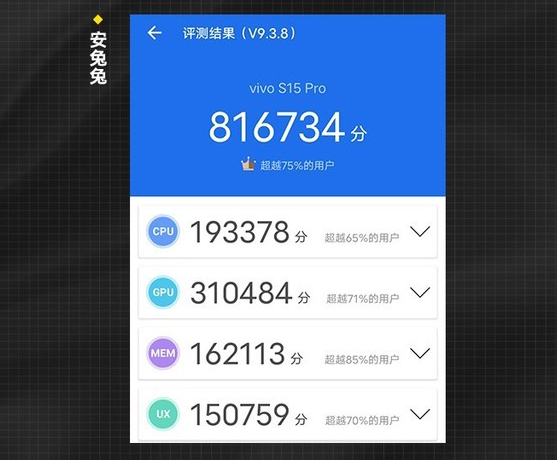 由于目前天璣8100處理器在3D Mark的跑分測(cè)試中存在Bug,所以我們使用安兔兔對(duì)vivo S15 Pro進(jìn)行性能測(cè)試,結(jié)果如下:
