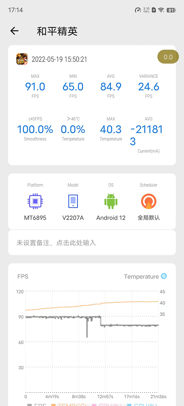 至于大家最關(guān)心的發(fā)熱問題,在連續(xù)測試完這三個項目(75分鐘)后,它的機身也只是溫溫?zé)岬臓顟B(tài),遠未達到燙手的程度。不錯的性能表現(xiàn),出色的功耗控制,也難怪今年大家都希望廠商們能夠推出更多搭載天璣8100處理器的手機,vivo S15 Pro在游戲方面的表現(xiàn)確實讓我非常滿意。