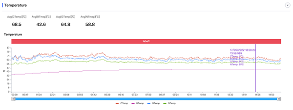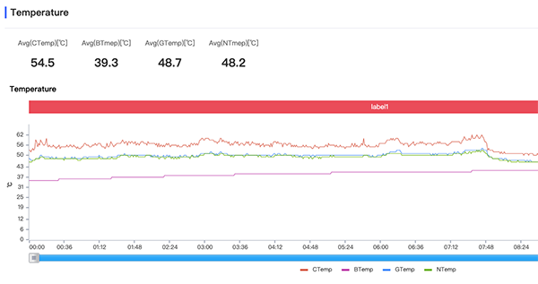 再來看一下核心溫度,其中核心平均溫度為54.5°C。
