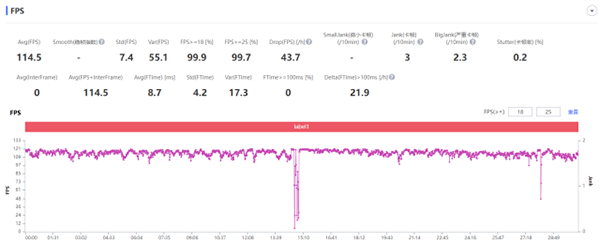 vivo S15的直屏方案吸引了眾多游戲黨,而想要留住游戲黨的話,自然要在游戲體驗上足夠優(yōu)秀,接下來就一起看看vivo S15的游戲表現(xiàn)吧。我們進行了兩款市面上的主流游戲《王者榮耀》與《原神》的30分鐘幀率測試,得到的結果如下圖所示: