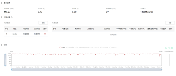 至于S15標(biāo)準(zhǔn)版在游戲中的表現(xiàn),我們也在游戲之中“真刀真槍”地測試了一番。在《王者榮耀》中,它的幀率波動幅度非常小,去掉了中間換局的過程后,平均幀率能來到驚人的119.27幀,幾乎完全跑滿高幀率的上限。