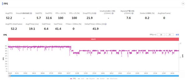 高負(fù)載測試方面,則使用“著名性能測試軟件”——《原神》,并開啟最高60幀幀率。30分鐘測試結(jié)果顯示,原神平均幀率為52.2幀。從幀率圖上可以看到,Reno8 Pro+前10分鐘基本處于滿幀運(yùn)行狀態(tài),10分鐘后幀率基本在45-48幀之間波動(dòng)。這個(gè)游戲表現(xiàn),即使與跑分更高的驍龍8Gen 1等處理器相比都毫不遜色。