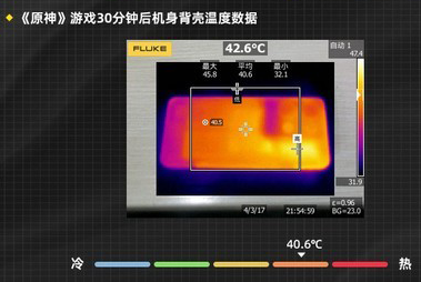 可以看到在運(yùn)行半小時(shí)《原神》后,機(jī)身平均溫度僅為40.6攝氏度。整個(gè)游戲過(guò)程中僅能感受到OPPO Reno8 Pro+機(jī)背微微溫?zé)?,在激烈的游戲?qū)?zhàn)中不會(huì)對(duì)操作構(gòu)成任何影響。