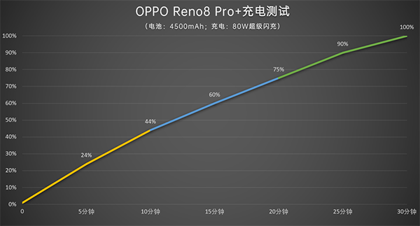 在實(shí)際的充電測試上,采用了長壽版80W超級閃充技術(shù)的OPPO Reno8 Pro+可以在10分鐘左右充到44%左右的電量,實(shí)測結(jié)果和OPPO官方實(shí)驗(yàn)室給出的數(shù)據(jù)近乎一致。完整充滿OPPO Reno8 Pro+的這一塊4500mAh大電池也僅需30分鐘,充電速度可謂非??焖佟6档米⒁獾氖?,OPPO Reno8 Pro+才80W快充的同時(shí)還讓手機(jī)的電池保持更少的損耗,讓手機(jī)電池有更長的使用壽命。這也是目前其他產(chǎn)品所不具備的一大優(yōu)勢。