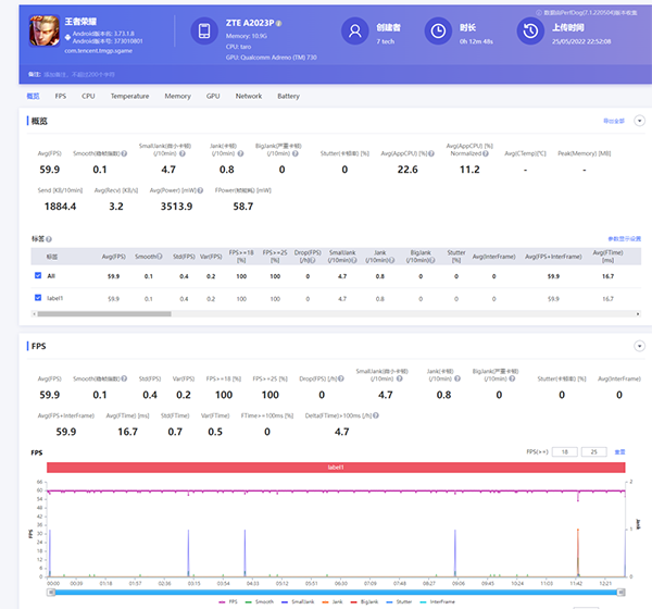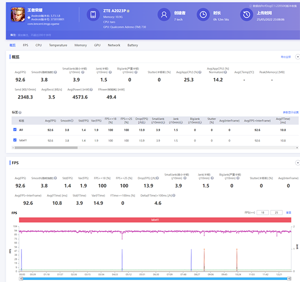 不過還是要進行一下游戲測試,王者60Hz模式下,該機沒有出現(xiàn)任何網(wǎng)絡(luò)卡頓或者畫面卡頓,整體十分流暢(只出現(xiàn)了3次微小卡頓,優(yōu)化的還不錯)。