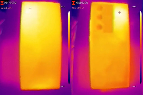 不過在室溫25°C的情況下,手機的表面溫度最高達到了40.8°C,要知道這還是王者60Hz模式,可以說散熱比較差了(驍龍8Gen1的發(fā)熱確實大,天璣9000的K50 Pro也不過40.1°C)。