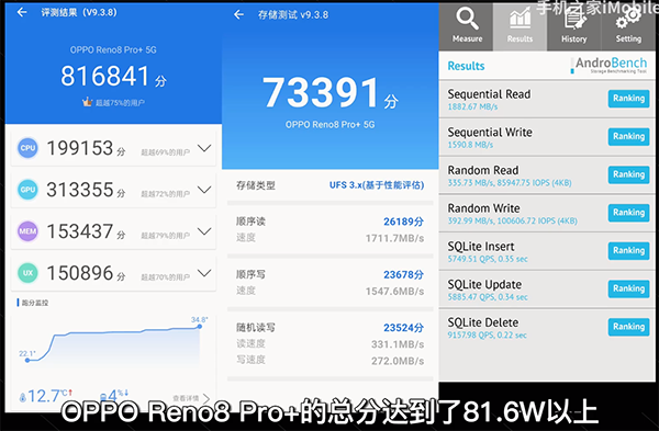 相信大家都知道芯片是很重要的,但是手機(jī)廠商也根據(jù)自身需求,與供應(yīng)鏈聯(lián)合調(diào)教,再通過系統(tǒng)上的調(diào)度優(yōu)化等,讓手機(jī)在個別性能表現(xiàn)更為突出。那么,在測試之前簡單回顧一下OPPO Reno8 Pro+的配置參數(shù),處理器方面根據(jù)聯(lián)發(fā)科官方數(shù)據(jù),天璣8100 Max采用了目前最先進(jìn)的5nm EUV工藝,定制旗艦芯的GPU升級為Mali—G610,相較于天璣8000圖形運(yùn)算性能提升了20%,讓它在游戲體驗上更為出色。與此同時,Reno8 Pro+ 的跑分也到了81萬+的分?jǐn)?shù),在同級處理器的機(jī)型中位居前茅。