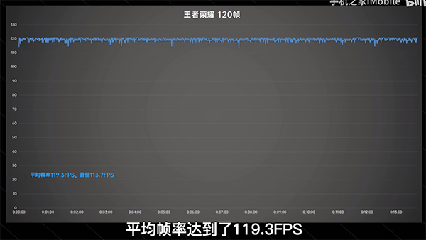 首先選擇當(dāng)前火熱的《王者榮耀》手游,本次測試OPPO Reno8 Pro+的過程中將所有畫質(zhì)均開到最高,包括打開超清分辨率、極高幀率(120 FPS)、抗鋸齒和水面反射效果,通過專業(yè)軟件記錄游戲中的幀率表現(xiàn)??梢钥吹?,Reno8 Pro+搭載的天璣8100-Max,其全程幀率表現(xiàn)穩(wěn)定,平均幀率達(dá)到了119.3 FPS,無論是射手補(bǔ)刀的技能銜接釋放,或者是十人混戰(zhàn)時刻,都沒有出現(xiàn)掉幀和卡頓等情況,再加上120Hz刷新率,即使是刺客英雄也是行云流水。