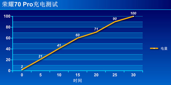 我們從2%電量開始充電,充電15分鐘后充進了58%的電量,達到了60%,只要30分鐘左右就可以讓榮耀70 Pro的4800mAh電池充到100%的電量,整體來說充電時間已經算相當快,只要短時間的充電就能獲得較長的續(xù)航時間。