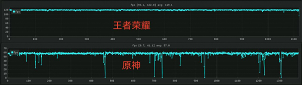 而針對(duì)實(shí)際的游戲測(cè)試,我們也選擇了國(guó)民級(jí)別的《王者榮耀》和《原神》進(jìn)行測(cè)試,目前榮耀70 Pro+已經(jīng)支持了《王者榮耀》的120高幀模式,而在120Hz高幀模式下,我們測(cè)得的其平均幀率達(dá)到了119.1幀,游戲幀率基本就是一條直線,游戲內(nèi)也都是非常流暢的表現(xiàn),即使是頻繁地團(tuán)戰(zhàn),也沒(méi)有出現(xiàn)任何卡頓的情況。