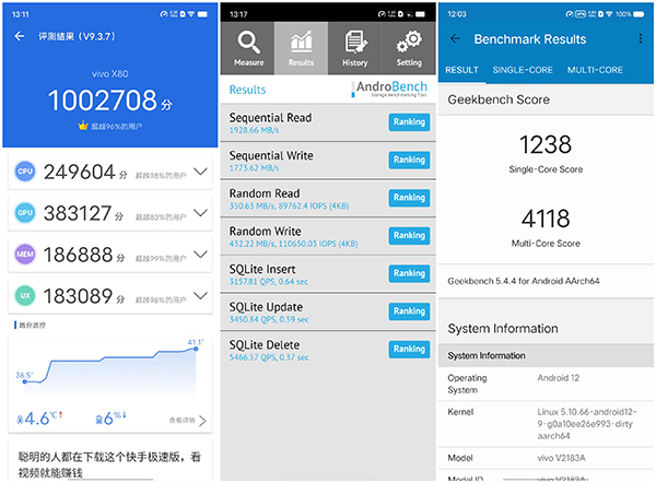 vivo X80搭載聯(lián)發(fā)科今年的旗艦芯片天璣9000,從跑分上可以看出性能應(yīng)和高通新驍龍8處于同一水平,安兔兔跑分突破100W,Geekbench 5跑分多核表現(xiàn)天璣9000要更好一些,最高可選12G LPDDR5內(nèi)存+512G UFS 3.1閃存組合,配備大面積X軸線性馬達(dá)和立體聲雙揚(yáng)聲器,從硬件上就非常適合玩游戲。