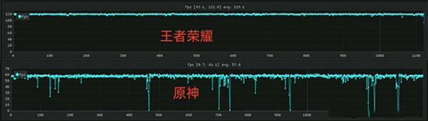 通過《王者榮耀》(120幀)和《原神》的游戲測試,榮耀70 Pro+的表現(xiàn)著實令人驚喜?!锻跽邩s耀》平均幀率達到了119.1幀,全程基本就是一條直線,游戲操控也非常流暢,即使是頻繁地團戰(zhàn)中也沒有出現(xiàn)任何卡頓的情況。而半小時《原神》下來竟然得到了平均57幀的好成績,在跑圖、刷怪的過程中都非常流暢,表現(xiàn)比“火龍8”好多了。