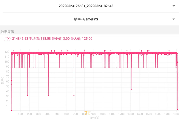 要想了解一臺(tái)手機(jī)的真實(shí)性能表現(xiàn),游戲測(cè)試自然是最為合適的。從測(cè)試來看,OPPO Reno8 Pro+能夠以118.5的平均幀率運(yùn)行王者榮耀,整體畫面操作非常流暢,幀率變動(dòng)非常小,即使在戰(zhàn)局后期的打團(tuán)戰(zhàn)中,幀率依舊能夠穩(wěn)定在120幀左右。