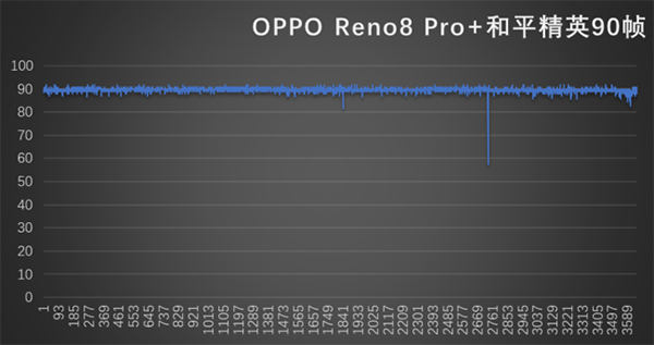 其中,極限穩(wěn)幀功能可以很好地改善游戲里復雜場景的幀率波動,減少游戲卡頓的次數(shù),而且就算長時間玩游戲也能夠獲得穩(wěn)定流暢的體驗。開啟后使用幀率監(jiān)測軟件可以看到,在當前設置下,運行一小時平均幀率可以穩(wěn)定在88.5,從輸出的數(shù)據(jù)圖上看,幀率基本維持在一條直線上,相鄰前后之間最大幀率差沒有5幀,實際體驗極為流暢沒有掉幀感。