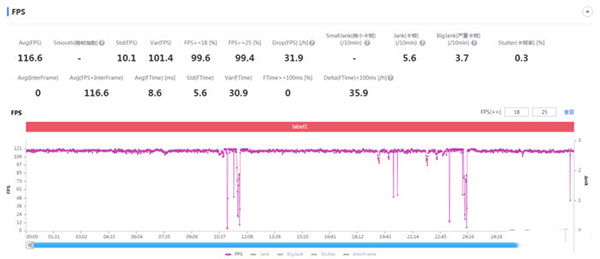 游戲低負(fù)載測試方面,我選取了國民手游《王者榮耀》,開啟最高120幀幀率。30分鐘測試下來,平均幀率116.6幀,穩(wěn)得一批。