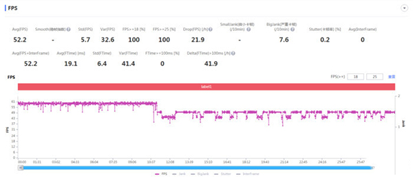 高負(fù)載測試方面,則使用“著名性能測試軟件”——《原神》,并開啟最高60幀幀率。30分鐘測試結(jié)果顯示,原神平均幀率為52.2幀。從幀率圖上可以看到,Reno8 Pro+前10分鐘基本處于滿幀運(yùn)行狀態(tài),10分鐘后幀率基本在45-48幀之間波動(dòng)。這個(gè)游戲表現(xiàn),即使與跑分更高的驍龍8Gen 1等處理器相比都毫不遜色。