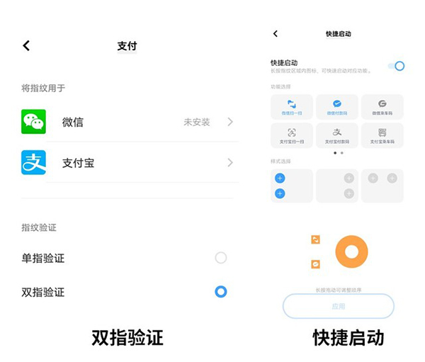 雙指驗(yàn)證支付與快捷啟動(dòng)