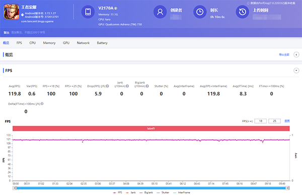 首先是《王者榮耀》,一局游戲下來,游戲平均幀率為119.8幀,vivo X Note運(yùn)行這款游戲的表現(xiàn)很輕松,游戲全程沒有感受到任何幀率波動。特別是在一對一PK和多人團(tuán)戰(zhàn)時,玩家不必?fù)?dān)心被卡頓、掉幀現(xiàn)象拖后腿。