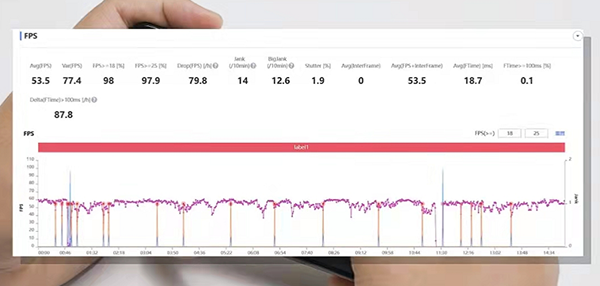 其中,得益于全新ICE液冷散熱的加持,紅魔7做到了滿幀運(yùn)行,幀率高達(dá)60.31fps,僅背面最高溫度達(dá)到了50℃左右。而黑鯊5 Pro雖然將液冷散熱面積提升到了5320mm2,散熱效果也不錯(cuò),但是在運(yùn)行《原神》游戲時(shí),幀率僅達(dá)到了53.5fps,且正反面及側(cè)身的溫度均達(dá)到了53℃左右,讓人在玩游戲時(shí)有些不適。