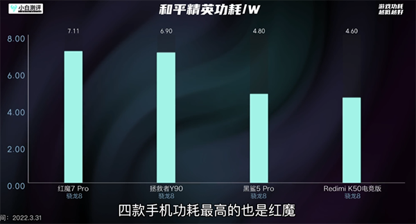 從下面的實(shí)測(cè)可以看出,同為高通驍龍8平臺(tái)的四款游戲手機(jī),在進(jìn)行《和平精英》流暢畫質(zhì)+90Hz模式的測(cè)試中,黑鯊5 Pro、拯救者Y90、紅魔7 Pro均取得接近90幀滿幀運(yùn)行的好成績(jī),而在功耗表現(xiàn)上,黑鯊5 Pro僅為4.8W,遠(yuǎn)低于兩款采用主動(dòng)散熱方案的游戲手機(jī),僅比紅米K50G高0.2W,能效比表現(xiàn)非常出色。