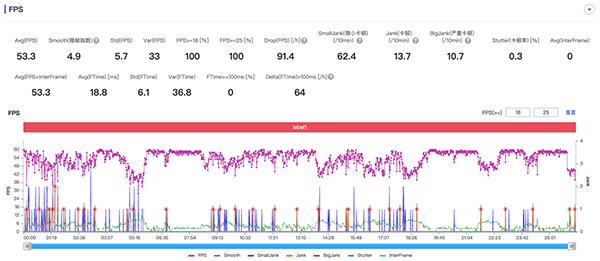 從幀率波動情況來看,25分鐘的游戲中沒有出現(xiàn)鎖幀降頻的現(xiàn)象,幀率波動基本處于戰(zhàn)斗場景下,會降至40幀左右,低于35幀的情況非常少,這個測試成績,屬于相對出色的了。