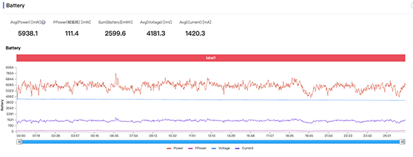 功耗方面,25分鐘的原神為5.9W左右,在一眾驍龍8Gen1旗艦中,不算高。