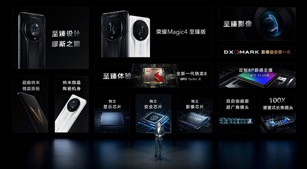 榮耀Magic4至臻版還搭載了一顆獨立影像芯片,最高處理帶寬20bit,支持28.8TOPS的最高AI算力,可實現(xiàn)4KRAW域的實時圖像計算,4K夜景視頻實時預覽和4K超級夜景視頻拍攝等能力。