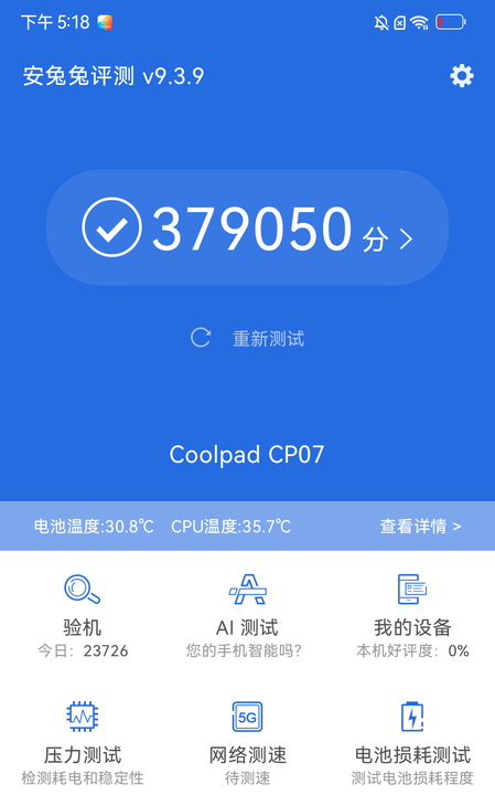 聯發(fā)科天璣700八核處理器采7nm先進工藝制程,架構采用2顆Cortex-A76(最高頻率2.2GHz)加6顆Cortex-A55(最高頻率2.0GHz)的八核設計,LPDDR4x高速存儲。輔以COOLOS 自研系統(tǒng)深度優(yōu)化,給用戶帶來了高性能,低功耗,更流暢的使用體驗。從紙面參數上來看,天璣700的性能并不弱,也許是酷派調校過的原因,跑分會比同芯片的競品要高。