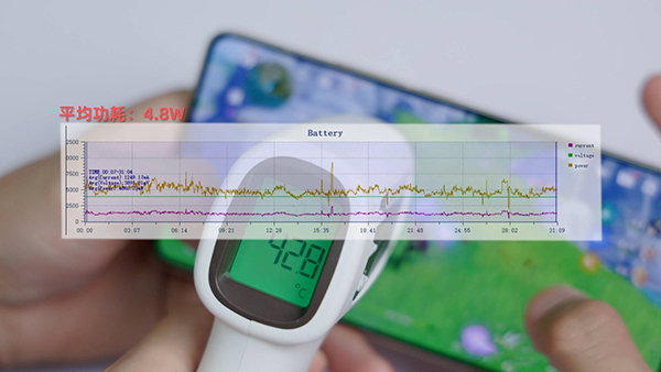半小時測試下來,平均幀率59.89,同樣也是滿幀表現(xiàn),曲線也沒有什么波動,平均功耗3.9W,溫度和王者榮耀也差不太多,表現(xiàn)得可以說很不錯,同時還有內(nèi)置的線性馬達以及4D震感功能,在開槍、扔雷時能感受到較為真實的震動反饋,對游戲體驗有明顯的提升。