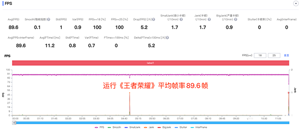 游戲部分,我們測試了高幀《王者榮耀》和《原神》的表現(xiàn),測試過程中手機(jī)都開啟了性能模式、極限穩(wěn)幀等設(shè)置。實(shí)測11分鐘《王者榮耀》游戲,OPPOK10全程90幀穩(wěn)幀運(yùn)行,平均幀率為89.6幀,只有兩三次幀率波動,游戲中并沒有感受到卡頓的情況。