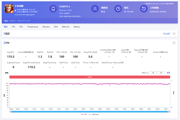 王者榮耀兩局游戲情況下,一局平均幀率119.2,另外一局幀率119.1,游戲全程流暢,基本沒有出現(xiàn)明顯卡頓情況。原神的表現(xiàn)就更加出乎預(yù)料,20分鐘原神測試,平均幀率59.1,游戲全程幀率也同樣很穩(wěn)定。