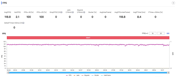 在《王者榮耀》實(shí)際測(cè)試中,vivo S15 Pro開啟120幀模式,并且在超高分辨率、極致畫面條件下開啟對(duì)局,全程幀率非常穩(wěn)定,僅有1-2幀的輕微波動(dòng),平均幀率為118.8。這個(gè)成績(jī)是相當(dāng)優(yōu)秀了,要知道能跑滿《王者榮耀》高畫質(zhì)和高幀率的手機(jī)雖然很多,但幀率穩(wěn)定的卻很少,就算是高端旗艦手機(jī)也無法保證能有著這么穩(wěn)定的幀率,這就能看出vivo S15 Pro的性能強(qiáng)悍之處。