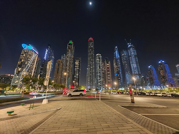 在光線較暗的情況下,你可以點擊啟用夜間模式,拍攝清晰的夜拍照片。即使沒有夜間模式,你也可以延長快門速度拍攝照片,讓足夠的光線進入。超廣角鏡頭也能拍攝出美妙的圖像,但自動HDR圖像看起來比主鏡頭差一點。