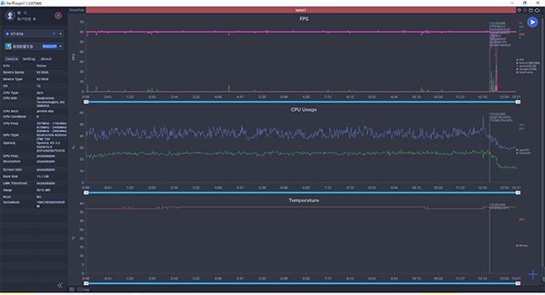 接下來測試的是《狂野飆車8》,同樣將畫質(zhì)設(shè)置為最高。從結(jié)果可以看到,游戲基本能夠穩(wěn)定在滿幀運(yùn)行,同時(shí)整體的幀率波動(dòng)也同樣很小,基本上可以當(dāng)作滿幀運(yùn)行。更重要的是,我在玩《狂野飆車8》時(shí)特意站在景深深的山上大幅轉(zhuǎn)動(dòng)鏡頭——這是為了測試是否會(huì)發(fā)生畫面撕裂的現(xiàn)象,畢竟這在游戲中是很常見的,不過v我在測試時(shí)確實(shí)是沒有發(fā)生畫面撕裂的情況。個(gè)人猜測是因?yàn)関ivo X80 Pro自帶的自研芯片V1+加持所致,據(jù)悉是能夠使手機(jī)在高負(fù)載的狀態(tài)下,依舊能夠讓整體過渡動(dòng)畫的暢度提升50%,這點(diǎn)對于游戲玩家來說確實(shí)是很友好了。