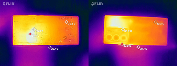 40分鐘《原神》之后,實(shí)測(cè)機(jī)身背面最高溫度為39.9℃,屏幕的最高溫度35.5℃,相比其它驍龍8手機(jī)來(lái)說(shuō),溫度要低不少。在夏天使用手機(jī)玩游戲,也不必?fù)?dān)心會(huì)出現(xiàn)燙手情況的發(fā)生。