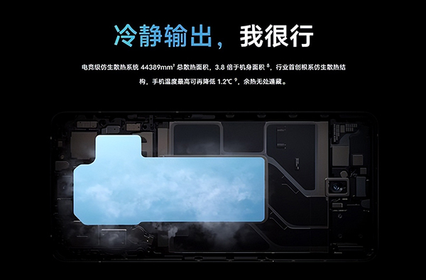 搭載了與旗艦機(jī)看齊的LPDDR5 四通道內(nèi)存和UFS3.1存儲,加載速度更快;電競級仿生散熱系統(tǒng),VC均熱板面積高達(dá)3002mm2,比上代機(jī)型增加了90%,石墨烯散熱片等效面積高達(dá)30947mm2,覆蓋了芯片主板揚(yáng)聲器前置攝像頭等熱源,是機(jī)身面積的3.8倍。