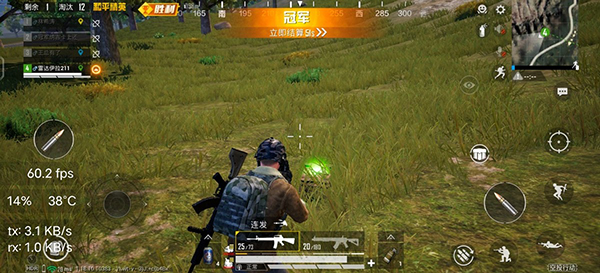 接下來(lái)是《和平精英》,依舊是最高畫(huà)質(zhì)、幀率的設(shè)置。游戲中毫無(wú)延遲、卡頓的感受,同時(shí)幀率也始終穩(wěn)定在59-60fps之間,X軸線性馬達(dá)和立體聲雙揚(yáng)聲器的加入讓人在作戰(zhàn)的時(shí)候更為敏感,對(duì)手幾乎近不了身,射擊的成功率也更高了。