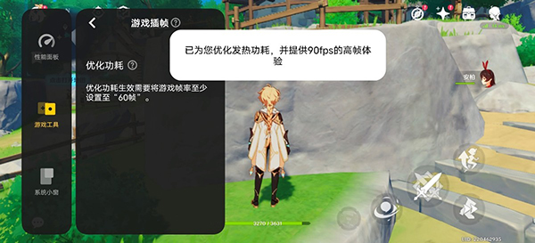 另外,雖然《原神》最高幀率是60fps,但如果想90fps跑也不是不可能。前面我們?cè)缯f(shuō)來(lái)vivo S15 Pro配備了獨(dú)顯芯片Pro,而有了這顆芯片就可以實(shí)現(xiàn)實(shí)時(shí)游戲插幀,不僅游戲起來(lái)更為流暢,還能有效降低處理器的功耗負(fù)載。有個(gè)最明顯的比較就是,我們?cè)诓鍘笸妗对瘛钒胄r(shí)比插幀前同樣的時(shí)間,90fps明顯更省電升溫速度也更慢。