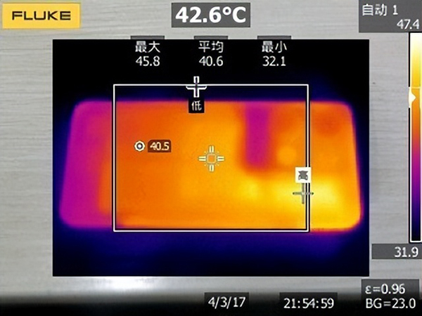 在進行了30分鐘的《原神》測試之后,我們對OPPO Reno8 Pro+的機身后蓋溫度進行了測試。經(jīng)測量,OPPO Reno8 Pro+的機身后蓋平均溫度為40.6攝氏度,單點峰值溫度為45.8攝氏度,用戶幾乎感受不到燙手感。